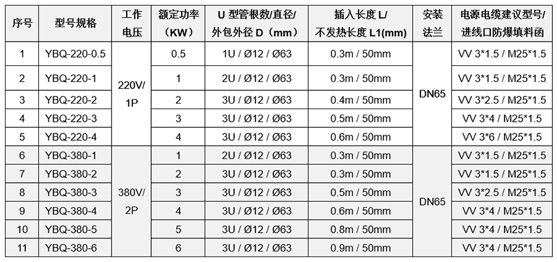 注:电加热器的法兰的安装尺寸参考HG20592 PN10 RF Q235,也可以定制其他材质、尺寸的法兰。