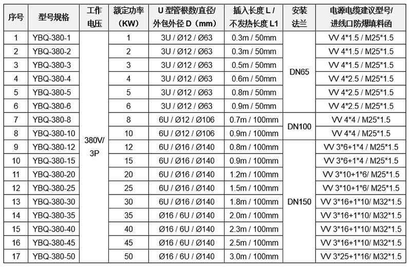 3)以YBQ50系列防爆电加热器为核心元件,配套容器、