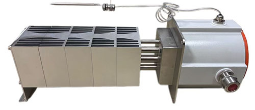 3)加热部分在箱内,能承受较高温度;接线盒不能承受高温,必须在箱外。加热部分和接线盒不能被分拆,须在箱体上开孔,将加热部分插入箱内,和箱体间用自带法兰和垫片密封安装。