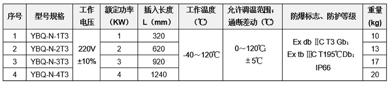 *注:工作温度的最高值为参考值,实际箱内能达到的最高温度取决于加热功率的大小和被加热箱体的散热情况,用户可根据箱体实际散热情况、需要的工艺温度、防爆温度组别,来计算和选择适合的型号。